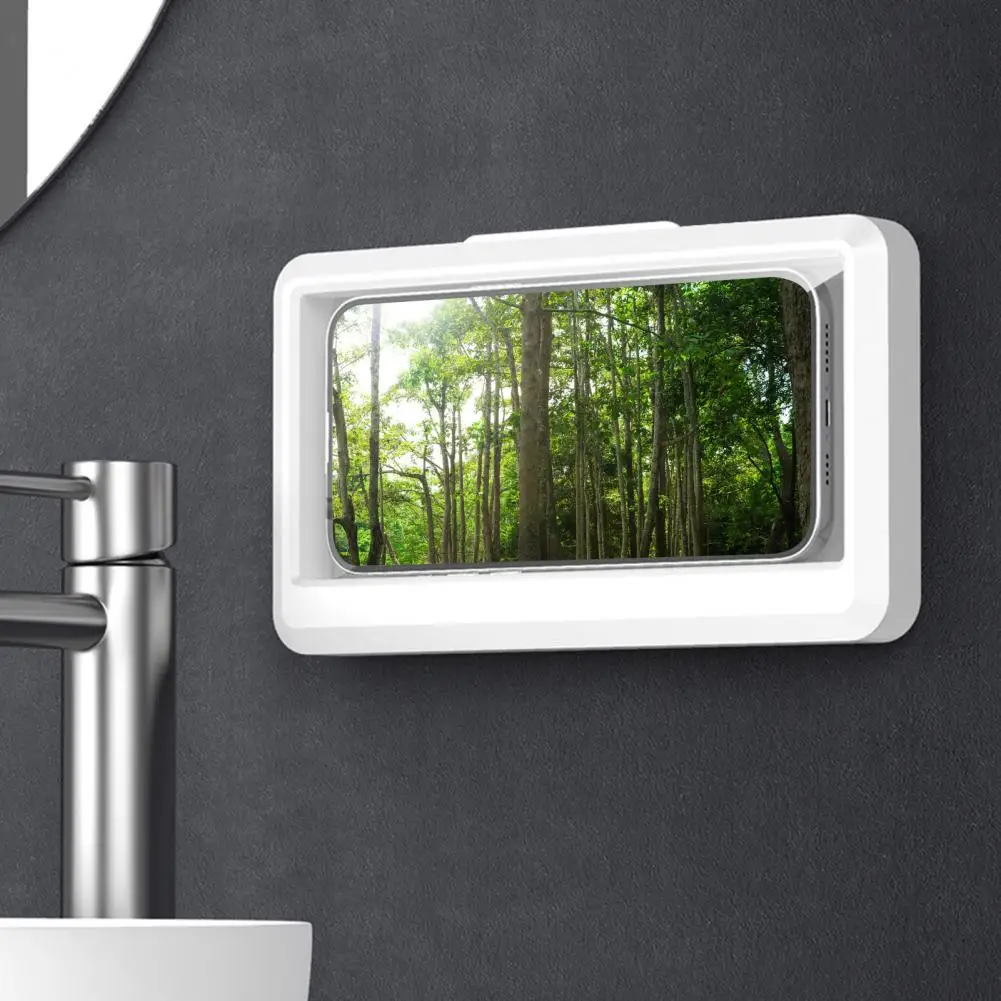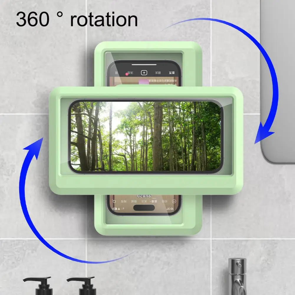 Support de téléphone de douche Étanche-480 degrés Rotation Anti-buée Étui à écran tactile pour miroir Mur Salle de bain Hauteur réglable Salle de bain Baignoire Mur Supports de téléphone